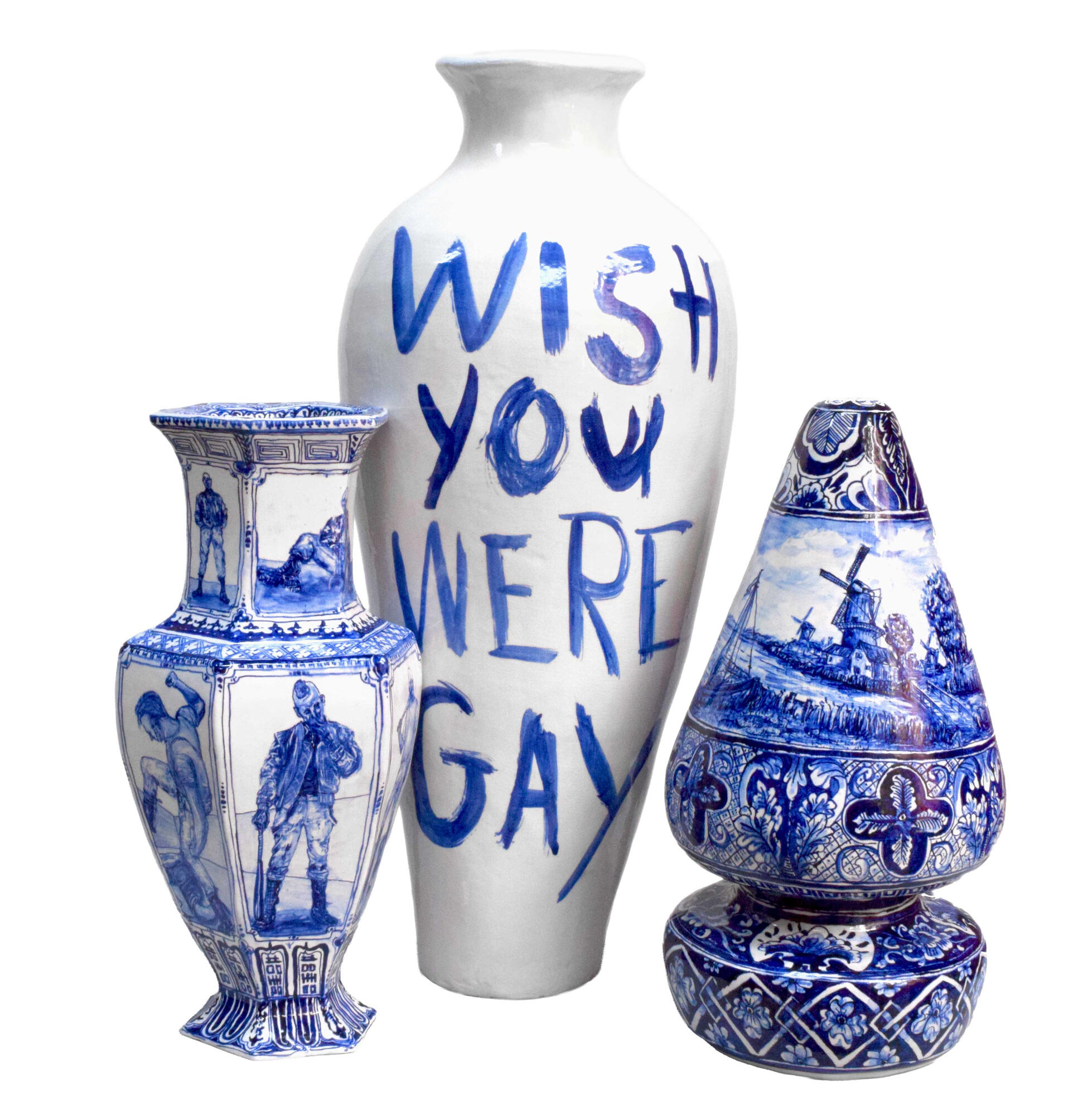 Works in ZaandamChris Rijk is a Dutch artist using classic pottery shapes and traditional Delft Blue to explore identity and consumerism through the lens of visual spectacle.